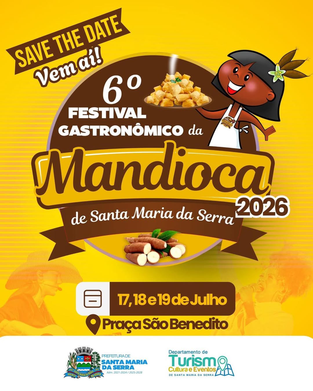 🥘🍲 | VEM AÍ, o 6º Festival Gastronômico da Mandioca de Santa Maria da Serra – 2026