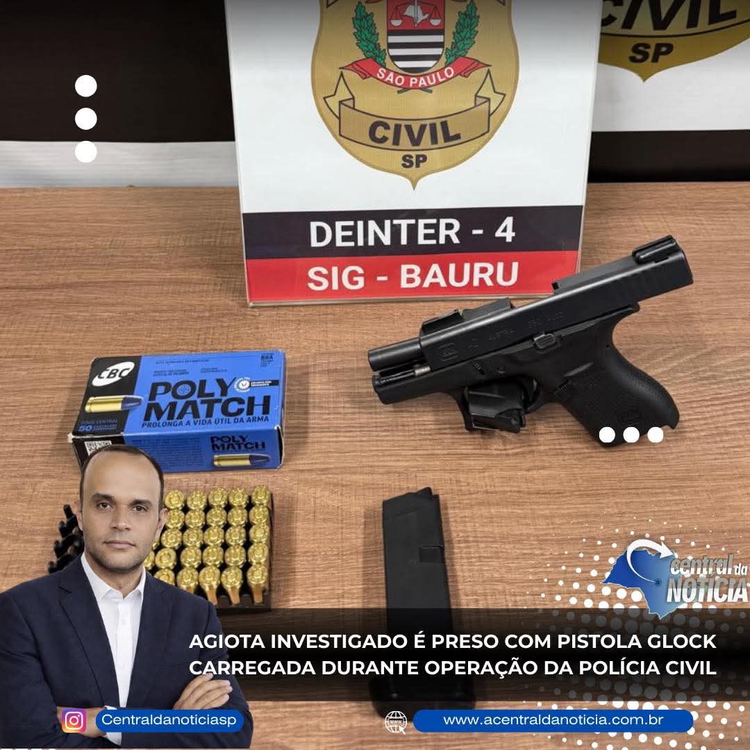 Agiota investigado é preso com pistola Glock carregada durante operação da Polícia Civil