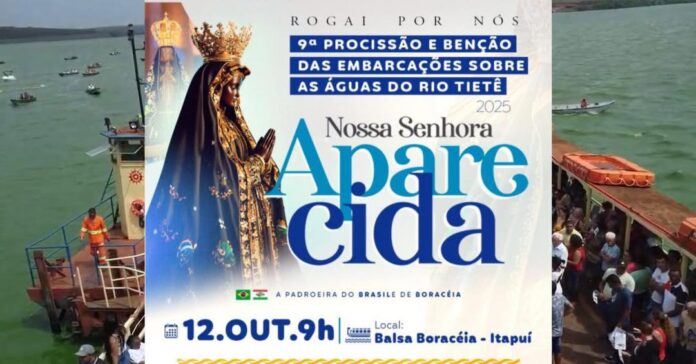 A partir das 9h30, o padre Toninho conduzirá a imagem de Nossa Senhora Aparecida sobre uma balsa, atravessando o rio em direção a Itapuí. Dezenas de embarcações ornamentadas seguirão juntas, formando um espetáculo de devoção que toma conta das águas do Tietê.