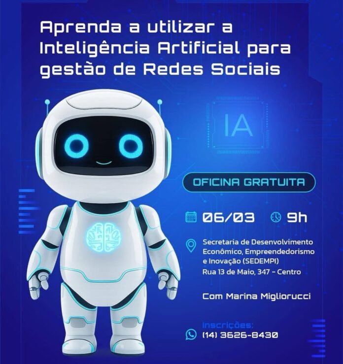 A iniciativa é da cidade de Jaú, por meio do pessoal do Desenvolvimento Econômico, Empreendedorismo e Inovação (SEDEMPI), que promove uma oficina com foco no uso de inteligência artificial aplicada às redes sociais corporativas.