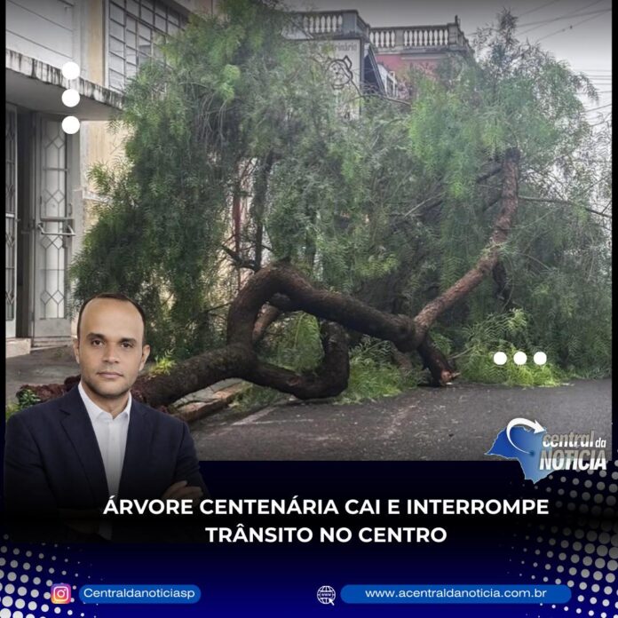 Uma árvore centenária, considerada histórica e muito conhecida pela população, caiu na manhã de sábado, 31, e provocou a interrupção temporária do trânsito em uma das principais vias da região central.