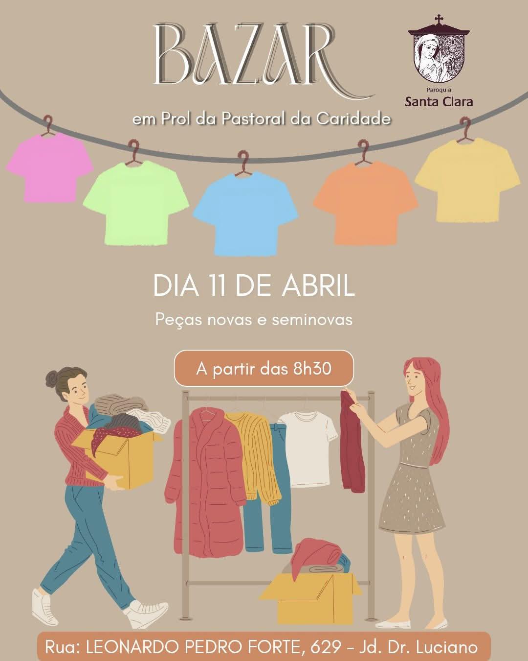 Uma oportunidade de economizar e ainda fazer o bem promete atrair moradores neste sábado, dia 11. A Paróquia de Santa Clara realiza um bazar beneficente com itens a partir de apenas R$ 2, reunindo peças novas e seminovas para todos os gostos.