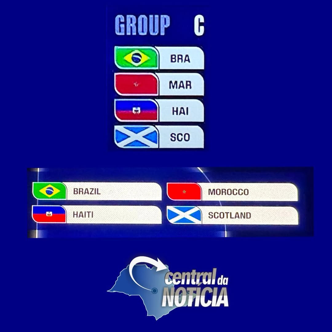 A Seleção Brasileira já tem definidos os três adversários da fase inicial do Mundial de 2026. O time integra o Grupo C, ao lado de Marrocos, Haiti e Escócia, conforme atualização divulgada após o sorteio realizado em Washington, nos Estados Unidos.
