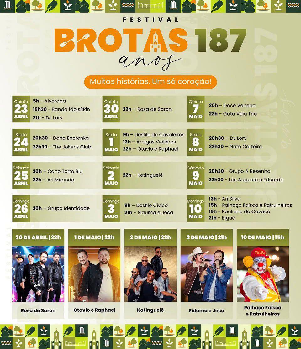 #Brotas #FestivalBrotas #AniversárioDaCidade #EventosSP #ShowsAoVivo #Cultura #Turismo #InteriorSP #FestaPopular #ProgramaçãoCompleta