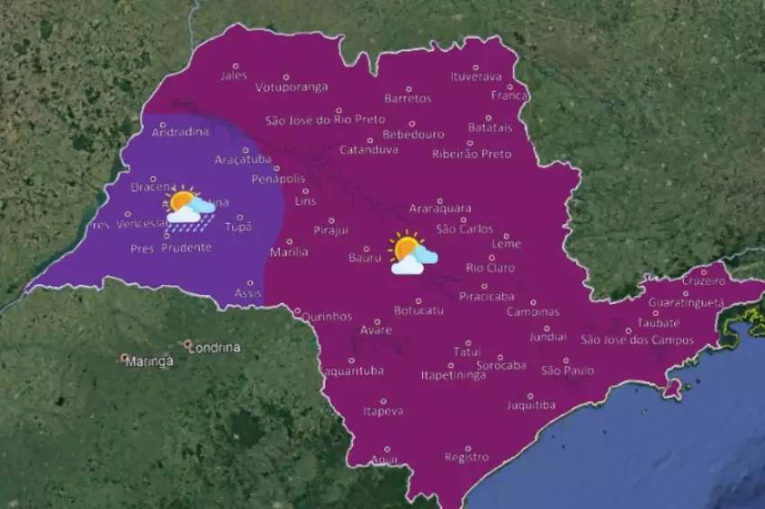 Em cidades como Jaú, Bauru, Marília, Araraquara, Brotas, São Carlos, Rio Claro, Ribeirão Preto e Franca, a tendência é de sol forte, céu parcialmente encoberto em alguns períodos e pouquíssima instabilidade atmosférica.