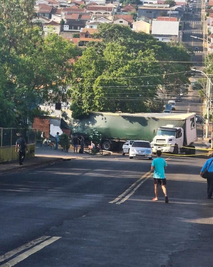 Um acidente assustou quem passava pelo cruzamento da Rua Atílio Frezarin com a Rua 28 de Abril, no início da manhã desta quarta-feira. Segundo as primeiras informações, um caminhão carregado perdeu o freio enquanto subia o sinaleiro e acabou descendo de ré, em alta velocidade.