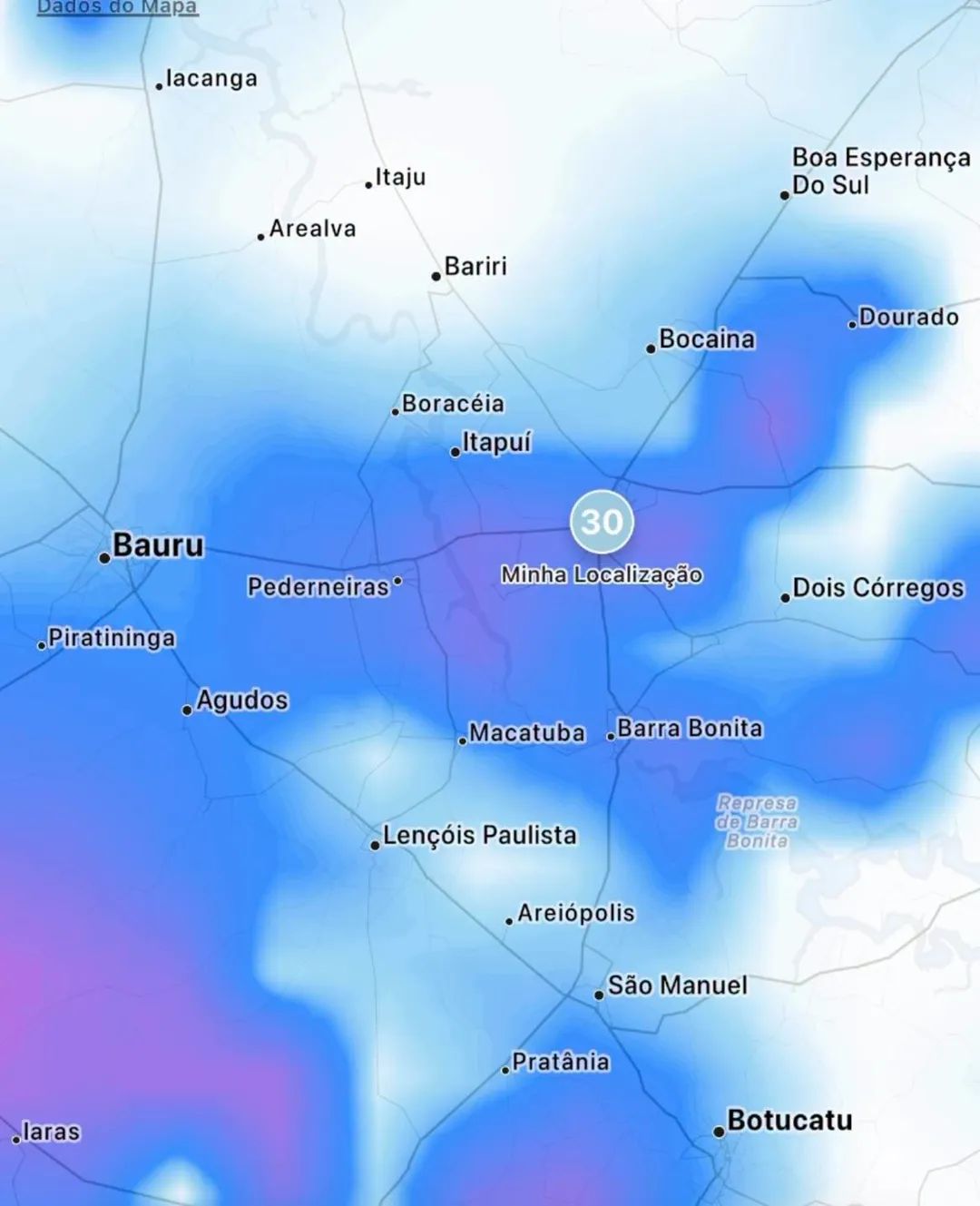 A tendência é que essa instabilidade avance e atinja cidades da região ainda nesta tarde. Em Jaú e também em Dois Córregos, Mineiros do Tietê, Itapuí e Pederneiras, o calor e o tempo abafado criam o cenário perfeito para a formação de nuvens carregadas.