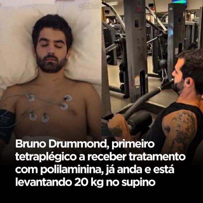 O bancário Bruno Drummond de Freitas sofreu um grave acidente de carro em 28 de abril de 2018, que causou uma lesão cervical completa e o deixou tetraplégico. Menos de 24 horas após o trauma, ele passou por cirurgia e recebeu a aplicação da polilaminina, ainda em fase experimental.