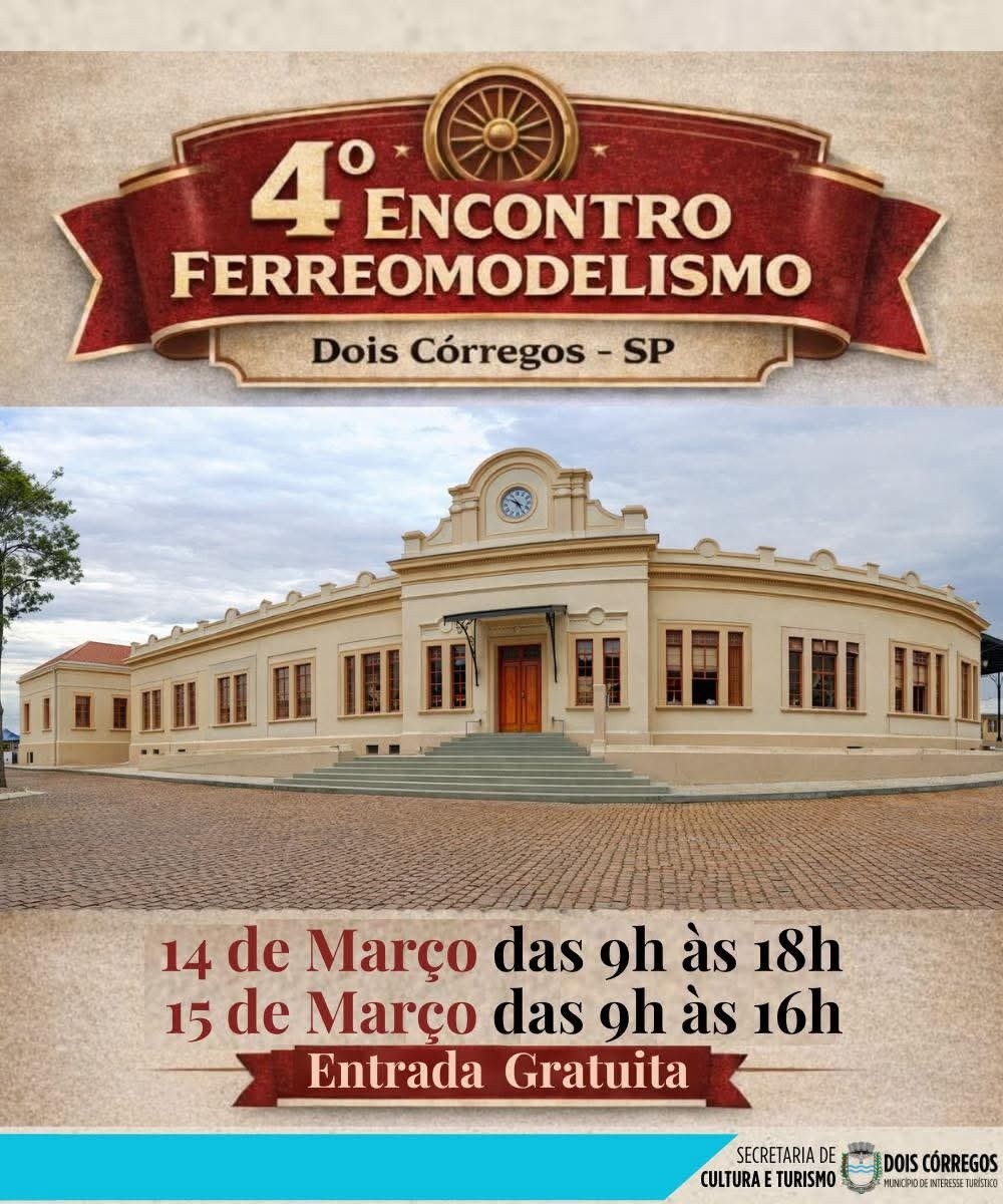 Dois Córregos será palco de um evento que promete encantar apaixonados por trens e também quem busca uma opção diferente de lazer. Nos dias 14 e 15 de março, a cidade recebe o 4º Encontro de Ferreomodelismo, com entrada gratuita para toda a população.