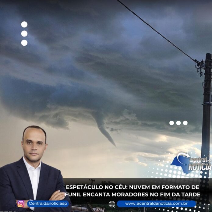 Um verdadeiro espetáculo da natureza foi registrado no final da tarde desta quinta-feira, 26, quando uma nuvem em formato de funil chamou a atenção pela beleza e pelo visual impressionante no céu.