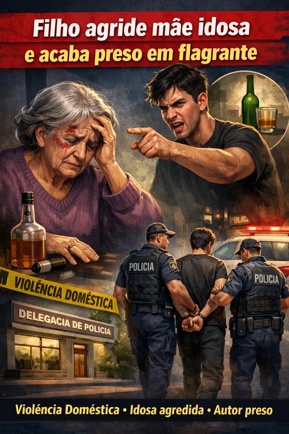 Uma ocorrência de violência doméstica terminou com um homem preso após agredir a própria mãe durante a noite de 19 de fevereiro. A vítima, uma idosa, foi empurrada pelo filho e caiu de rosto no chão, após alertá-lo sobre o consumo excessivo de bebida alcoólica.