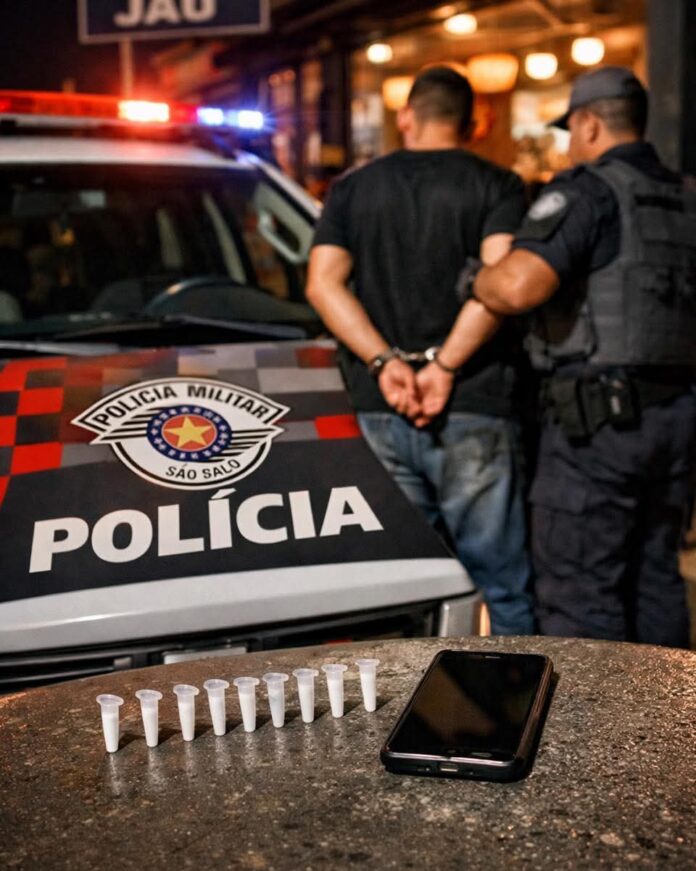 Uma ação rápida da Polícia Militar terminou com a prisão de um homem suspeito de tráfico de drogas na noite de 16 de março, em Jaú. A abordagem aconteceu durante fiscalização em estabelecimentos comerciais, quando o indivíduo chamou a atenção dos policiais pelo comportamento suspeito.