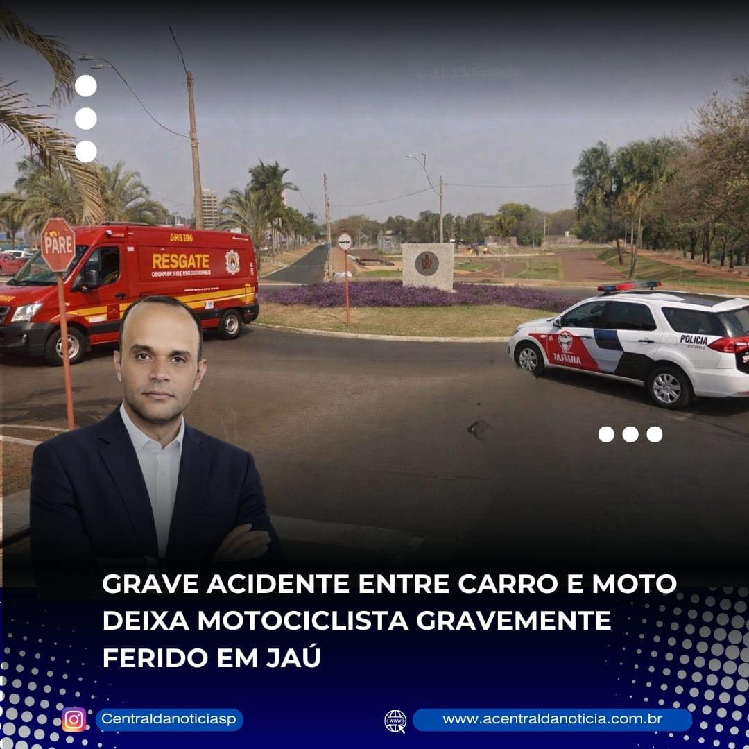 Grave acidente entre carro e moto deixa motociclista gravemente ferido em Jaú
