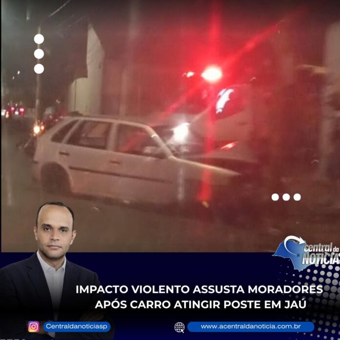 Impacto violento assusta moradores após carro atingir poste em Jaú