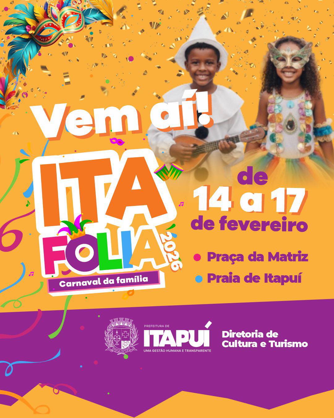 O clima de alegria já toma conta de Itapuí com a chegada do ItaFolia 2026, o carnaval da família que promete movimentar a cidade entre os dias 14 e 17 de fevereiro, reunindo crianças, jovens e adultos em uma programação pensada para todos os públicos.