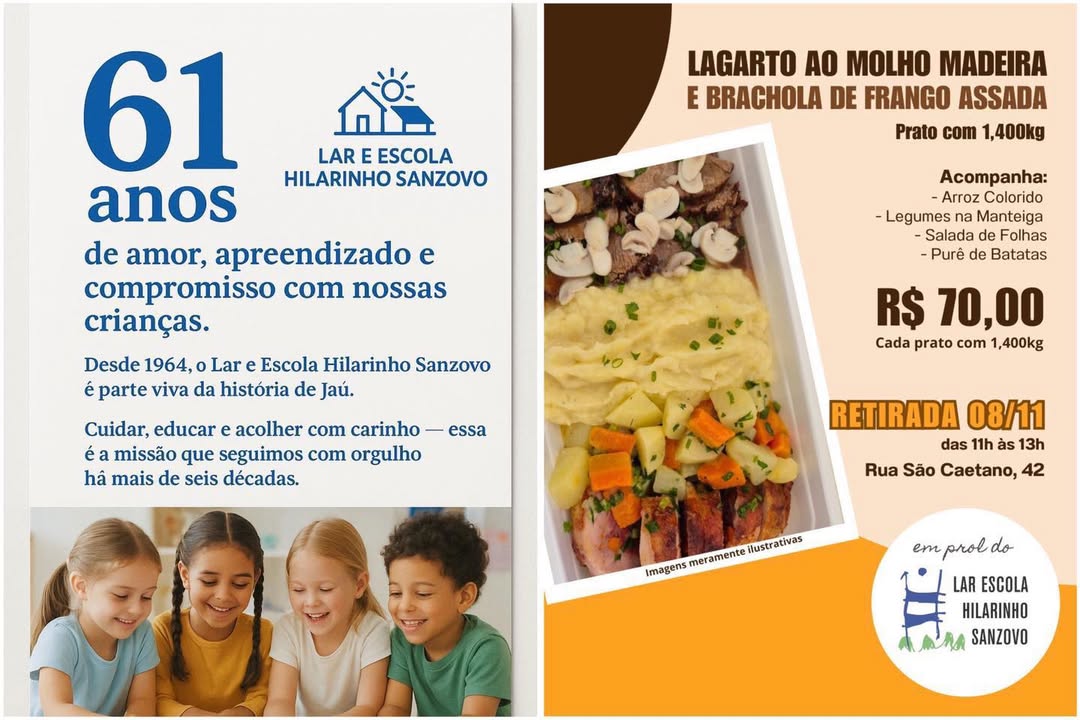 Lar e Escola Hilarinho Sanzovo celebra 61 anos com almoço solidário em Jaú! 🍽️❤️