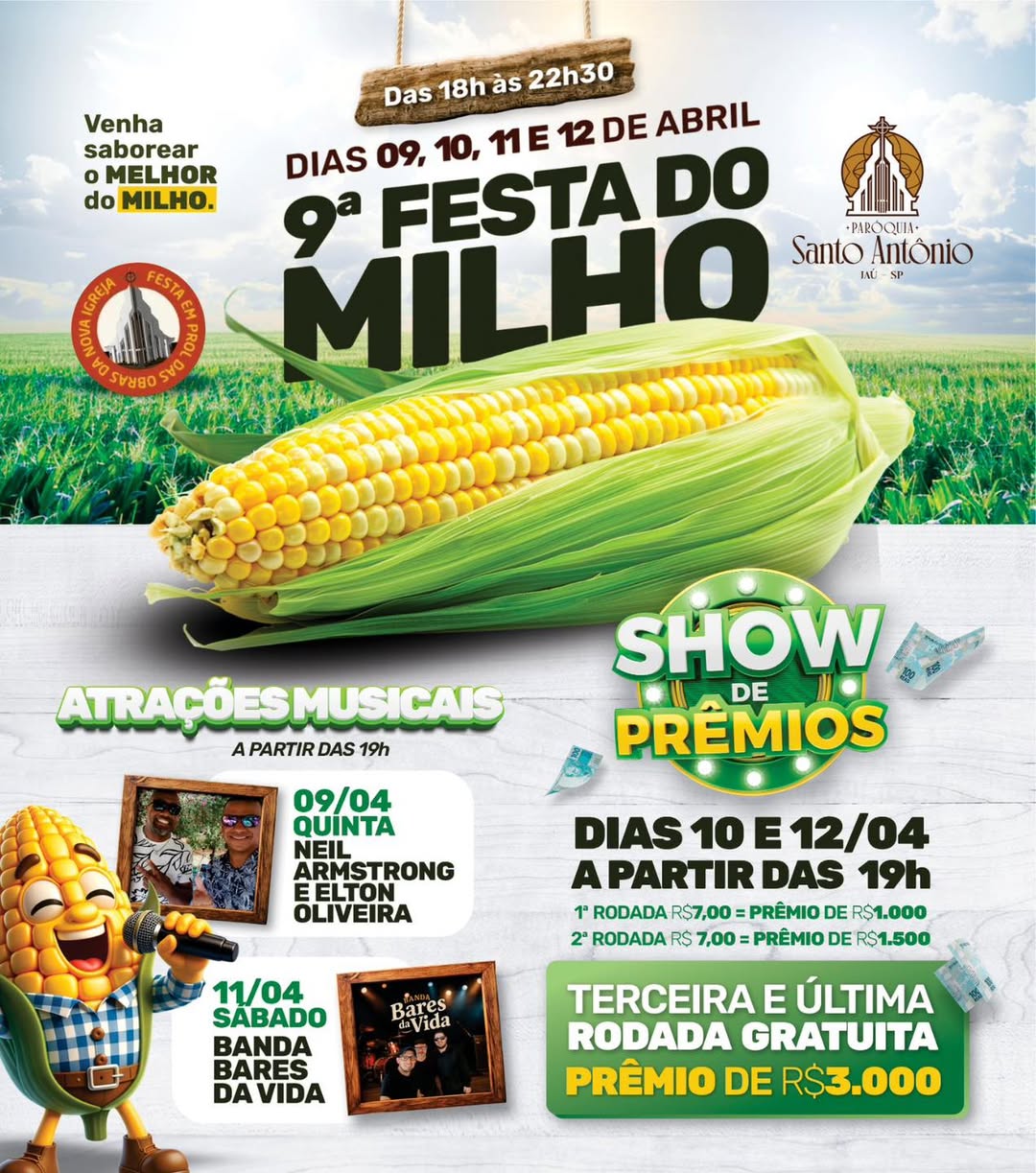 NÃO PERCA A 9ª FESTA DO MILHO – PARÓQUIA SANTO ANTÔNIO! 🌽✨