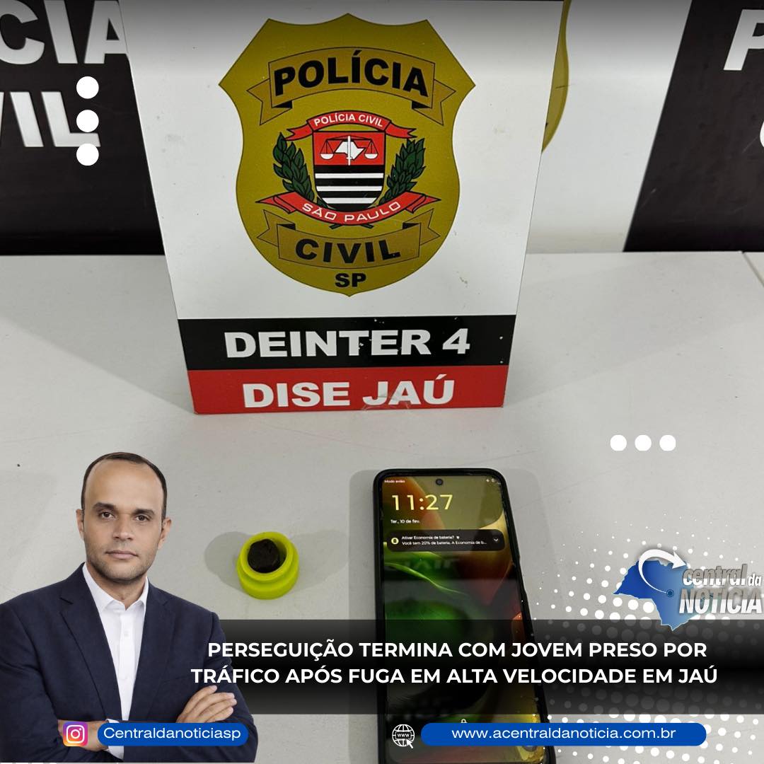 Perseguição termina com jovem preso por tráfico após fuga em alta velocidade em Jaú