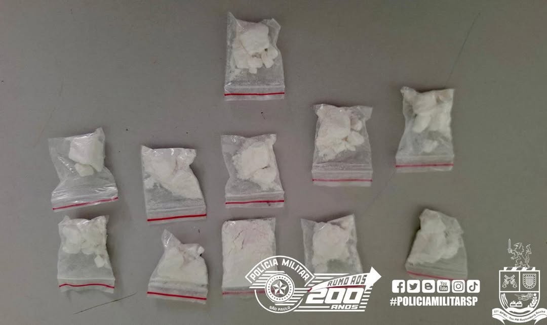A equipe voltou ao ponto onde os objetos tinham sido dispensados e encontrou dinheiro e 11 embalagens ziplock com pó branco, reforçando a prática de tráfico na região.