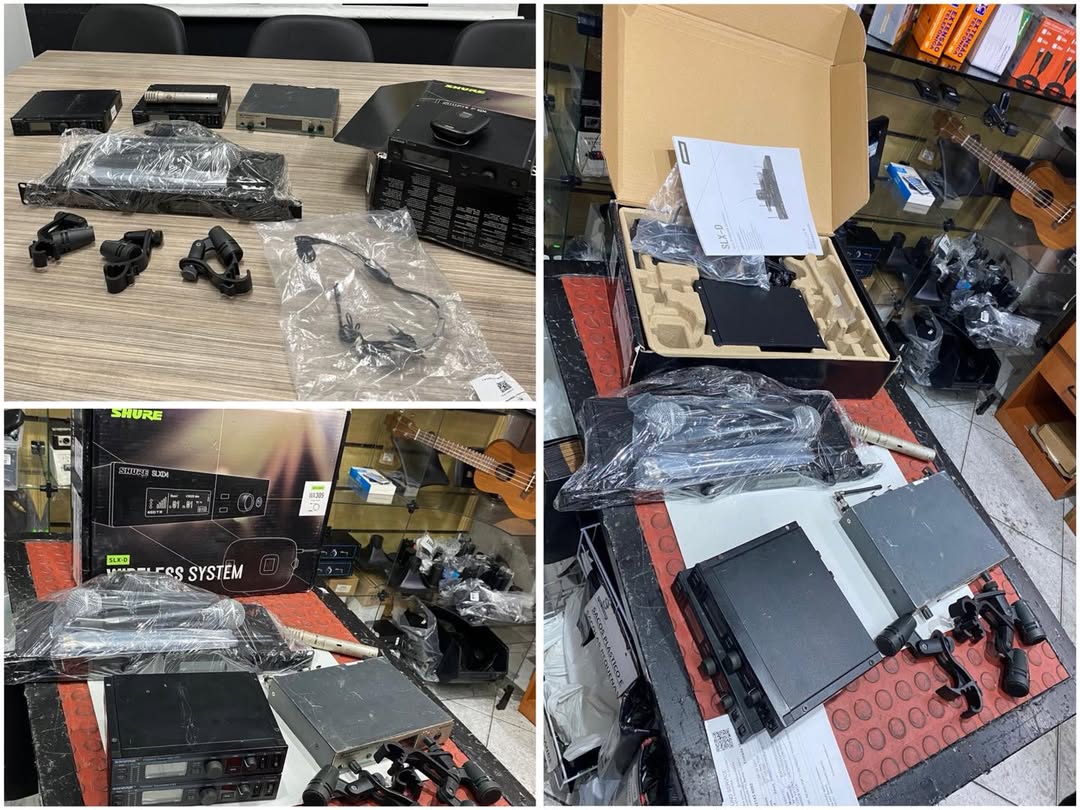 O trabalho foi conduzido pela equipe da Delegacia de Polícia de Dois Córregos, que, após investigações, descobriu que parte dos equipamentos estava sendo vendida na capital paulista. Com autorização judicial, os policiais foram até o local e encontraram microfones profissionais das marcas Shure e Sennheiser, além de transmissores e bases transmissoras avaliados em mais de R$ 40 mil. Todo o material foi apreendido e devolvido ao verdadeiro dono, que apresentou as notas fiscais.