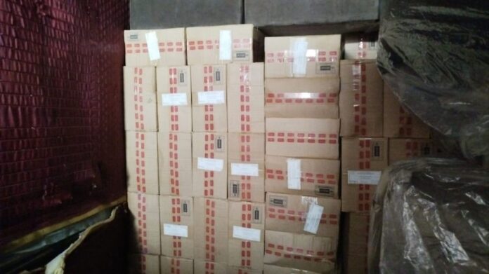 Diante da inconsistência, os agentes realizaram vistoria no compartimento de carga e encontraram centenas de caixas de cigarros estrangeiros sem documentação fiscal.