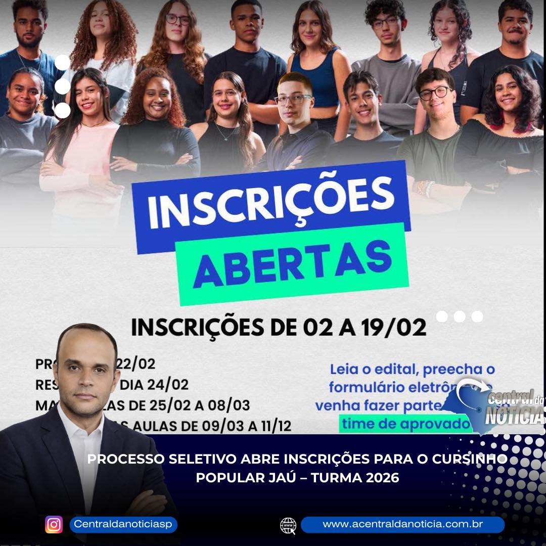 Estão abertas as inscrições para a Turma 2026 do Cursinho Popular Jaú, projeto social presencial voltado à preparação de estudantes para vestibulares e para o ENEM.