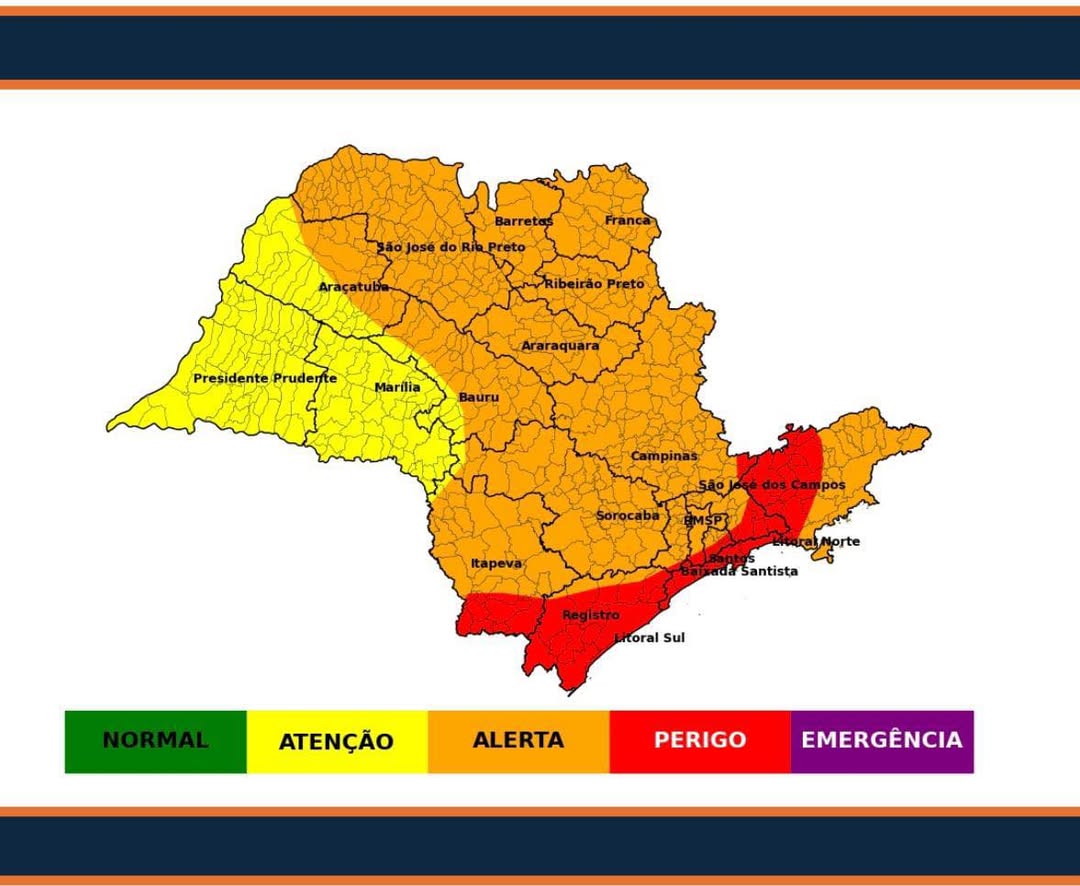 A Defesa Civil do Estado de São Paulo emitiu alerta para o risco de episódios de instabilidade em todo o território paulista neste domingo, 18 de janeiro. A previsão indica um dia com alta variação de nebulosidade e chuvas contínuas ou persistentes, que podem ocorrer com forte intensidade em alguns momentos.