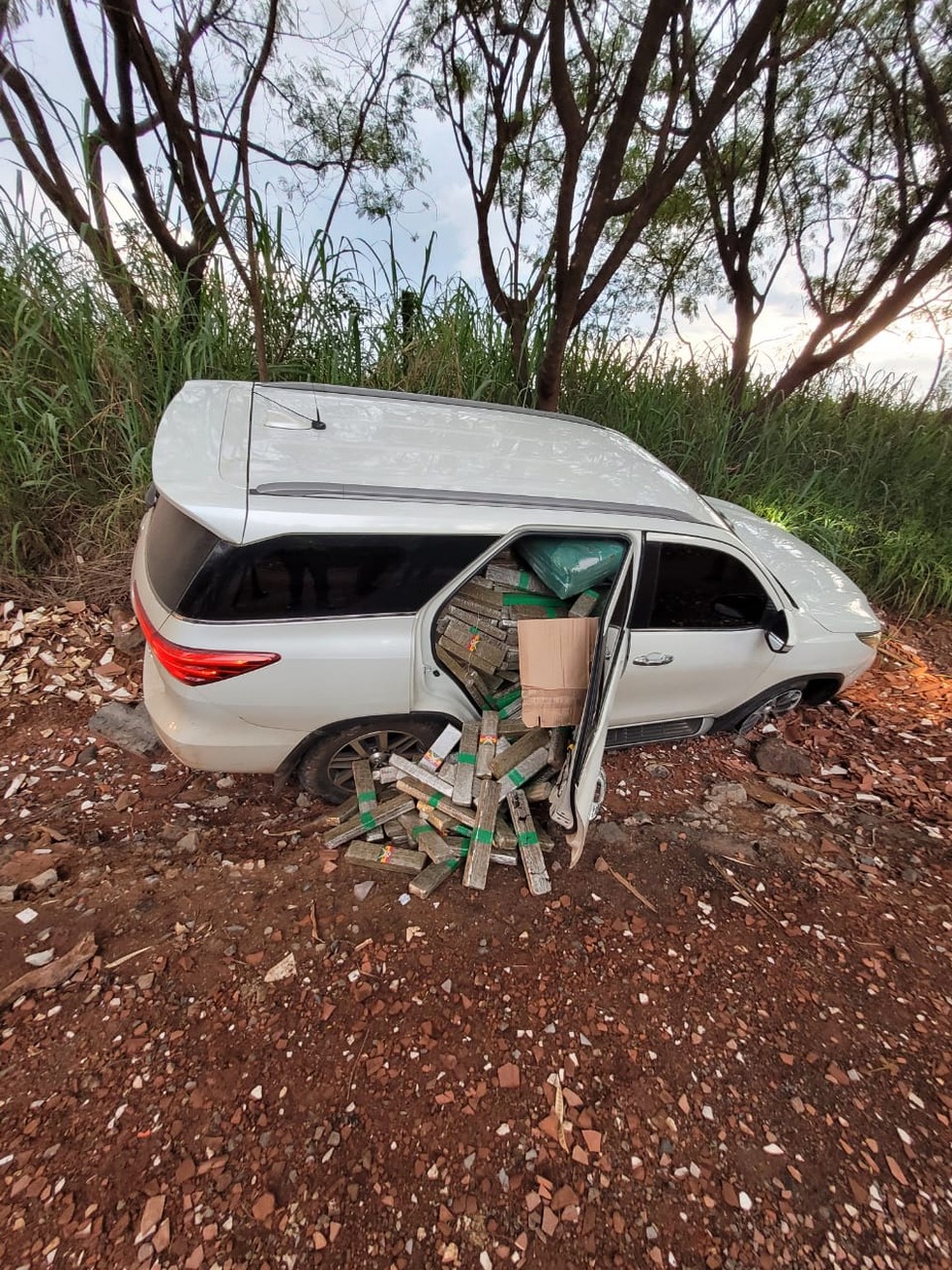 A caminhonete desrespeitou o sinal de parada da Polícia, mas foi detido na Estrada da Jacutinga. Os policiais vistoriaram o veículo e encontraram 1.489 quilos de maconha, dois rádios receptores e um aparelho celular. A caminhonete era furtada e estava com a placa adulterada.