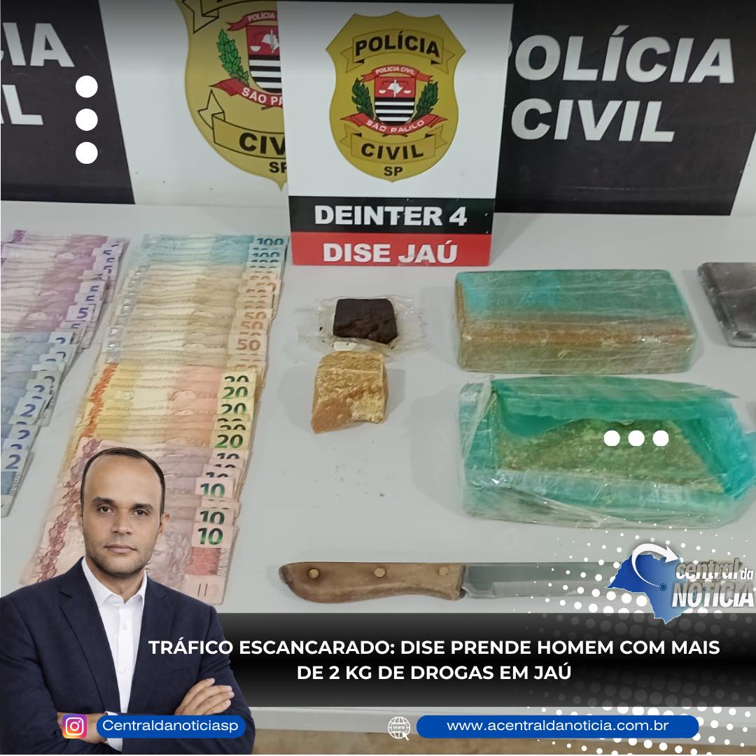 Em Jaú, no bairro Jardim São Crispim, equipes da Delegacia de Investigações Sobre Entorpecentes (DISE) localizaram G.H.C.C., de 23 anos, dentro de uma residência alvo da operação. Durante as buscas, os policiais encontraram mais de 2 quilos de crack e cerca de 60 gramas de haxixe, o que indica forte atuação no comércio ilegal de drogas.