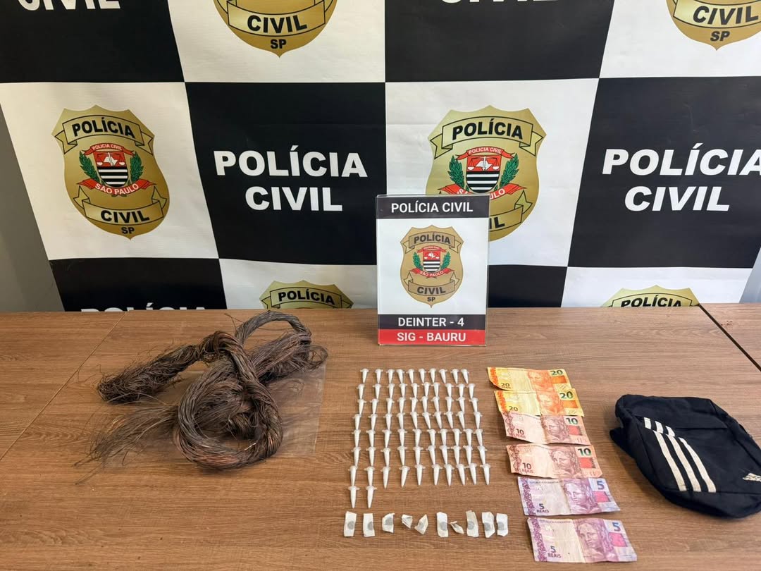 A ocorrência foi registrada no bairro Pousada da Esperança, em Bauru, durante atuação do Setor de Investigações Gerais. No local, os policiais flagraram L. H. G. D. S., de 20 anos, logo após receber uma sacola com fios de telefonia. A negociação chamou a atenção da equipe, já que o pagamento teria sido feito, possivelmente, com porções de drogas.