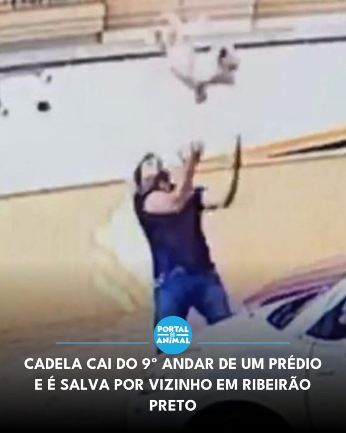 Um salto de coragem: homem se arrisca e salva cadela de queda do 9º andar