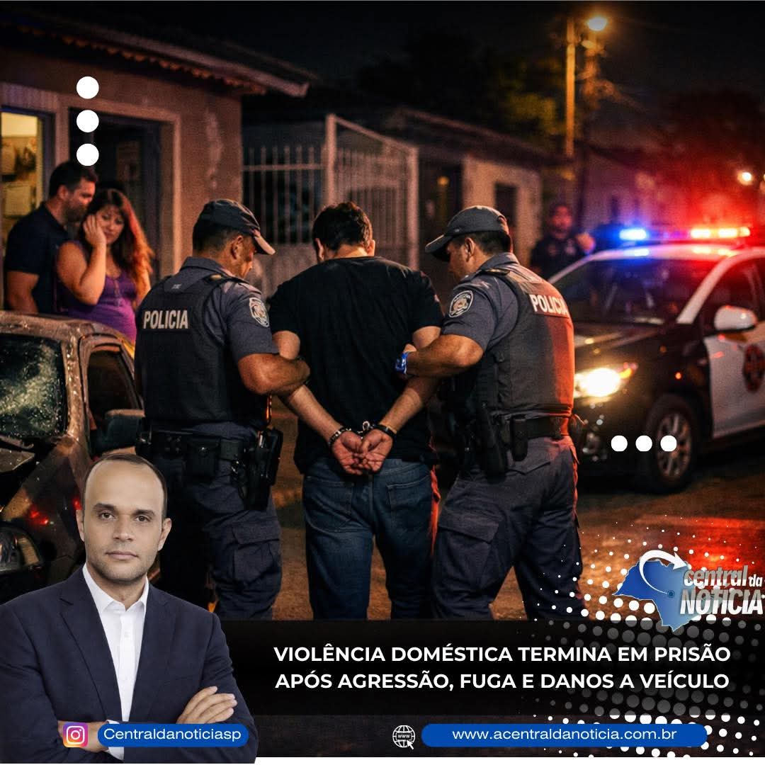 Violência doméstica termina em prisão após agressão, fuga e danos a veículo