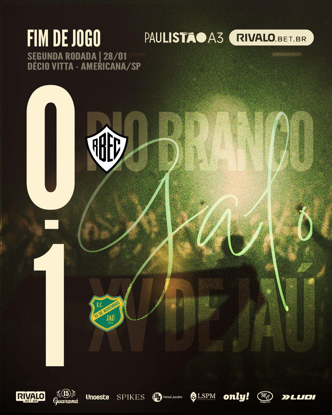 O XV de Jaú conquistou sua primeira vitória no Campeonato Paulista da Série A3 2026. Jogando fora de casa contra o Rio Branco, o time jauense venceu a partida disputada no fim da tarde desta quarta-feira (28).
